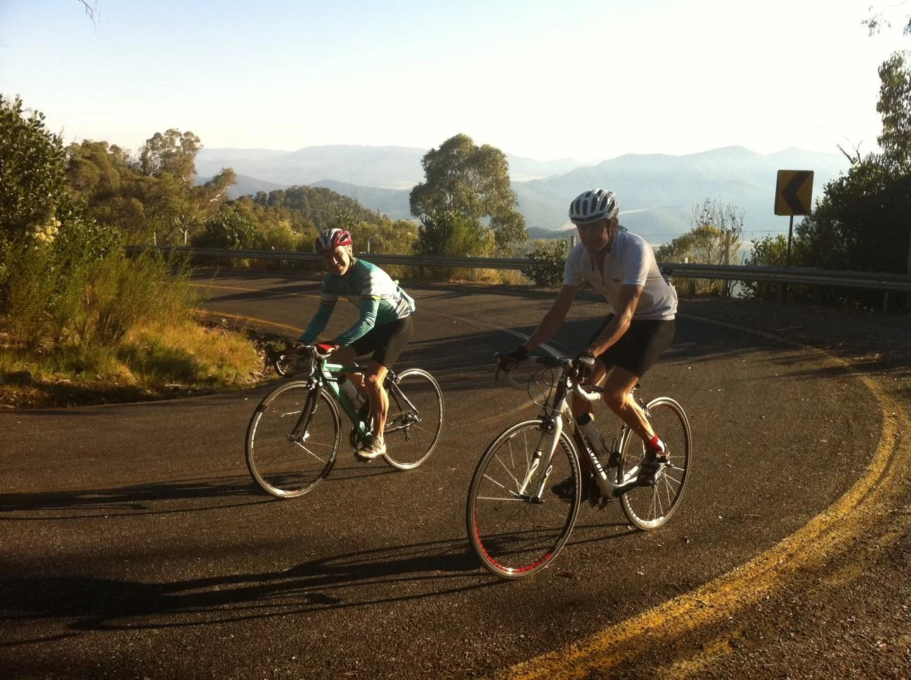 Fortunately, after a reviving double serve of creamed rice and a long descent to Mount Beauty, the signs were good. The 7.6 km climb to Tawonga Gap seemed easier than it sometimes does, the descent was a blast, and I took care not to waste energy on the drag back to the Great Alpine Road. A shout from some friends who were waiting for us at the turn-off gave me a further boost, and I arrived back in Bright at 4:09 p.m., on track and in a buoyant mood. The legs and me, we were OK. It was game on.